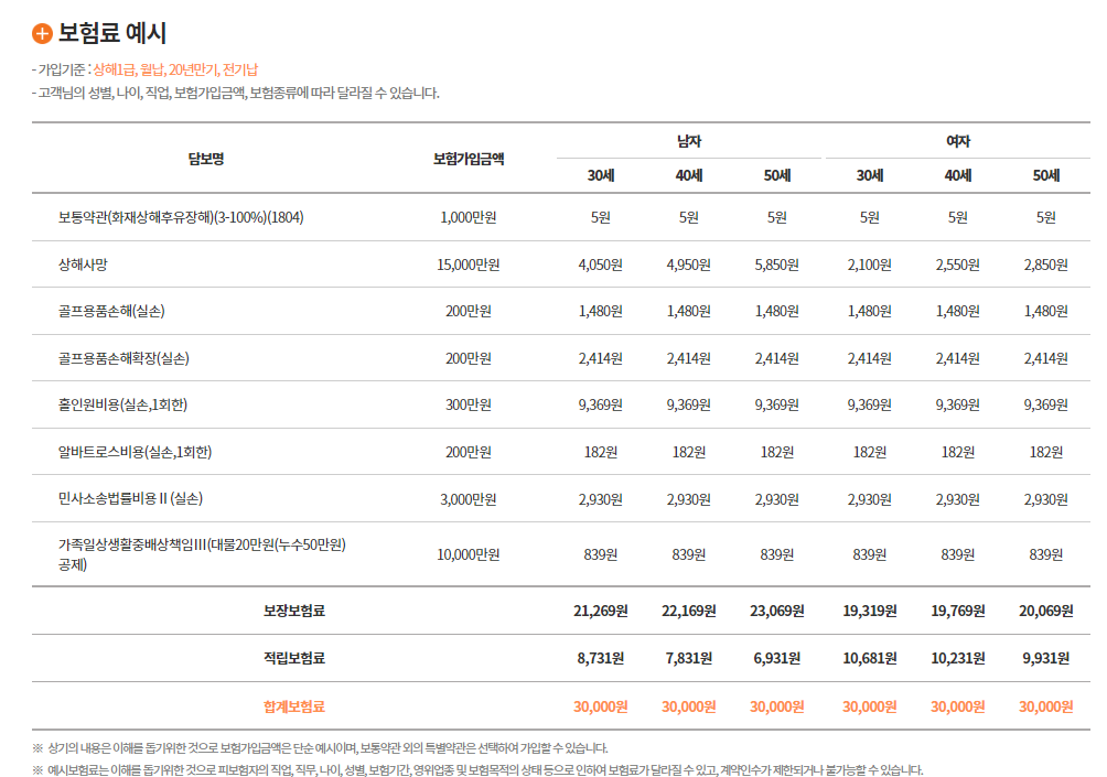 한화손해의 보장내용과 별다른 차이는 없습니다. 다만, 보험료를 계산하기가 까다로운데요. 보험료를 쉽게 계산할 수 있는 삼성화재 보험을 위주로 살펴봅시다.