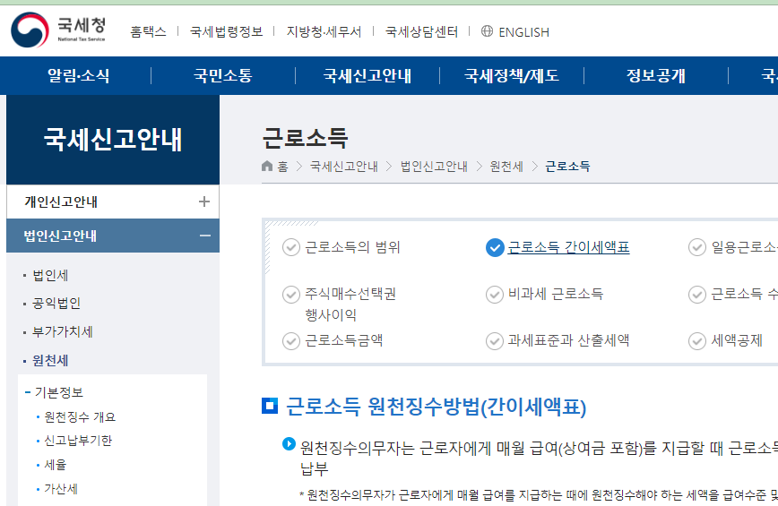 근로소득 간이세액을 계산해보았는데요. 국세청에서 제공하는 자동계산을 사용하니 너무 편리하더라고요. 좋은 정보인 것 같아 포스팅하여 공유하려고 합니다. 근로소득 간이세액표 찾으시는 분들은 참고하세요! 한글, 엑셀, PDF 파일로 나누어서 첨부해놓았습니다. 포스팅 끝까지 보시면 근로소득 세액 계산 시의 주의사항까지 알 수 있습니다.