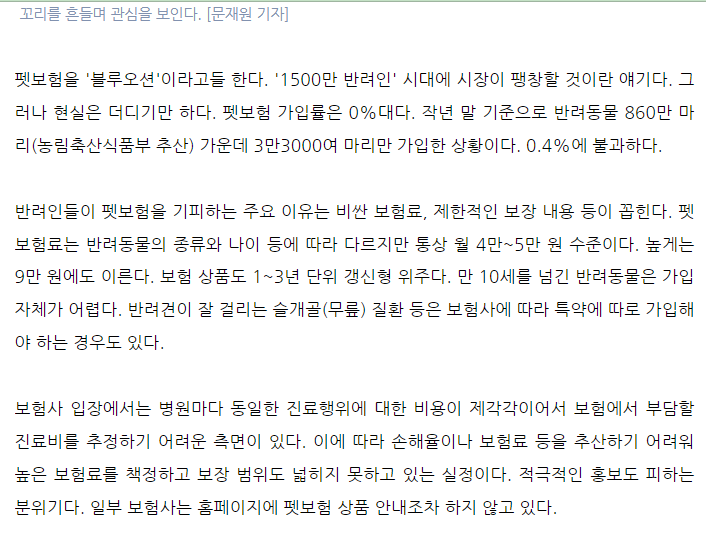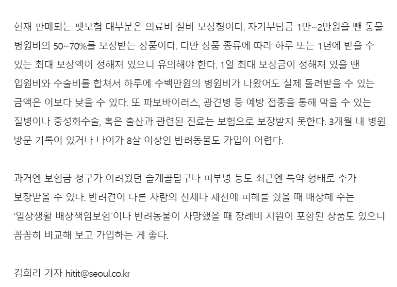 펫보험이 활성화 되고 있습니다. 시장경제 뉴스 기사에 따르면 윤석열 정부의 국정과제로 펫보험 활성화가 제시되었습니다. 그만큼 펫보험에 대한 관심이 많은데요. 펫보험을 가입할 때는 무엇을 기준으로 봐야할까요? 가입 및 상품 비교시 주의해야할 것 TOP3를 알아봅니다!