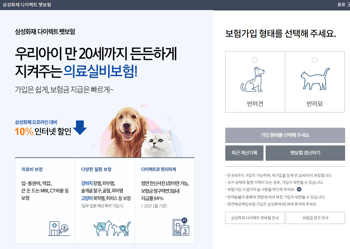 반려견, 반려묘 보험이 어떻게 이루어 질까요. 대표적인 삼성화재 다이렉트 펫보험을 기준으로 설명을 해보도록 하겠습니다. 여기서 감을 잡으시고 다른 보험사의 상품들도 비교해보시면 좋겠습니다.